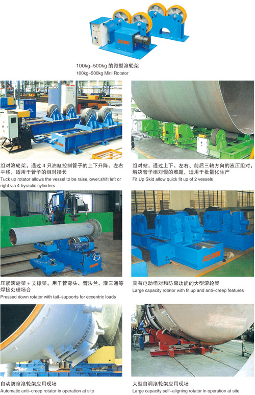 除标准的可调式滚轮架和自调式滚轮架外,克罗尼克可根据客户的不同使用要求设计制作各种特殊滚轮架